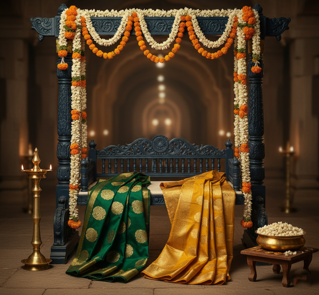 Discover our New Collection of pure Kanchipuram silk sarees – rich zari, vibrant colors, and timeless elegance. Perfect for weddings & festivals.